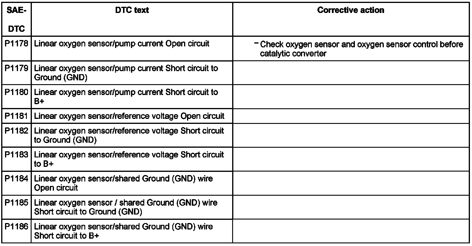 DTC P1178 - P1186: