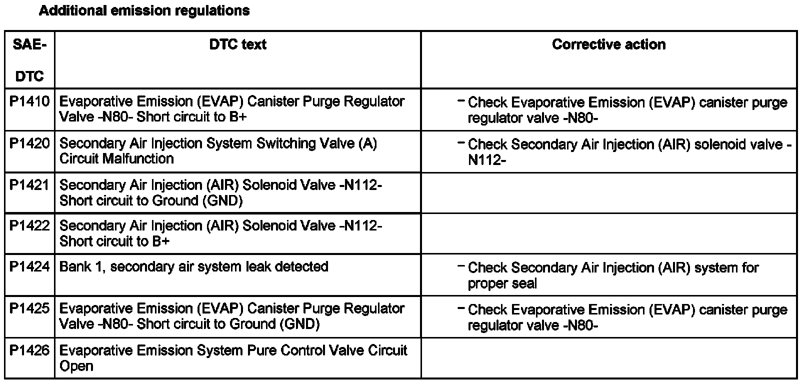 DTC P1410 - P1426: