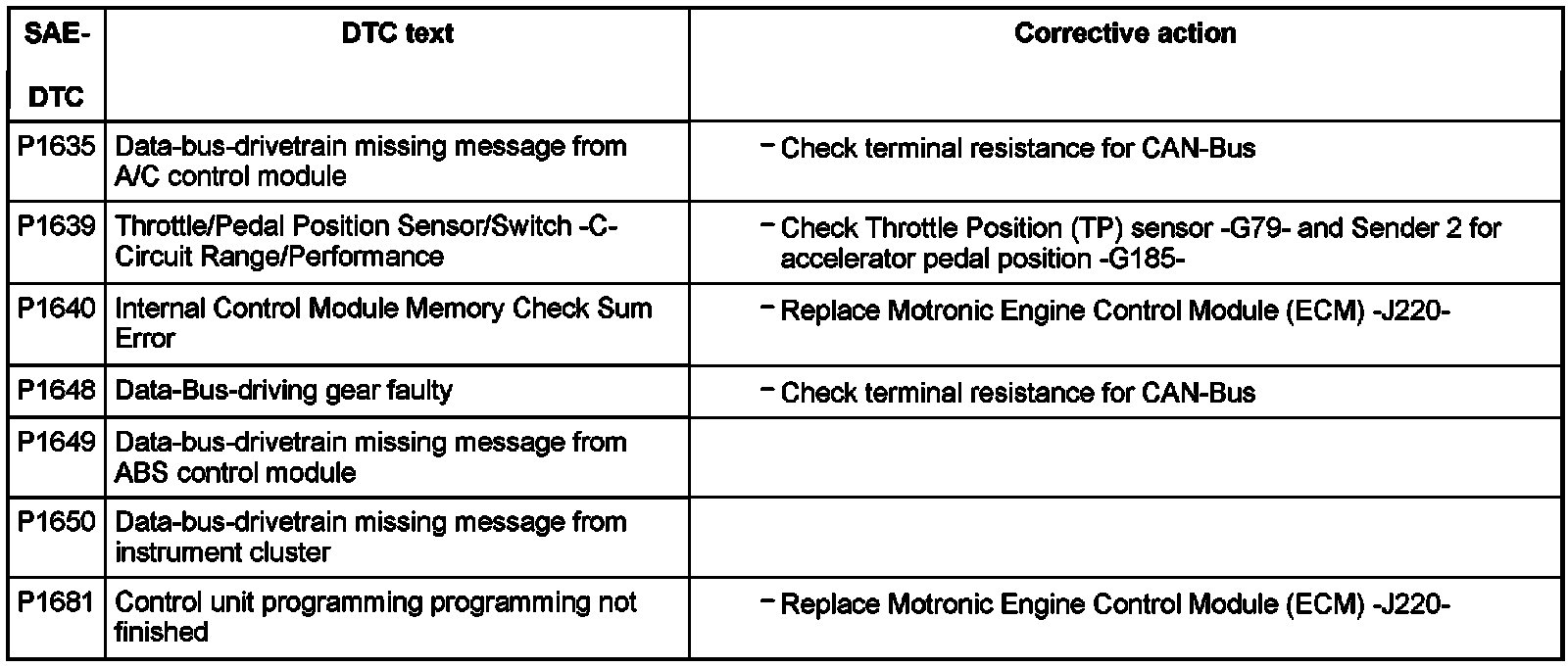DTC P1635 - P1681: