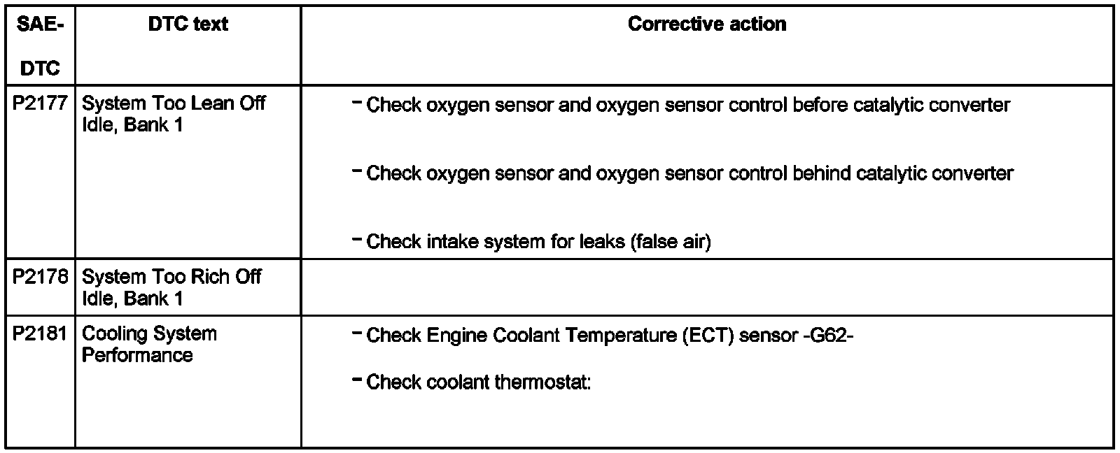 DTC P2177 - P2181: