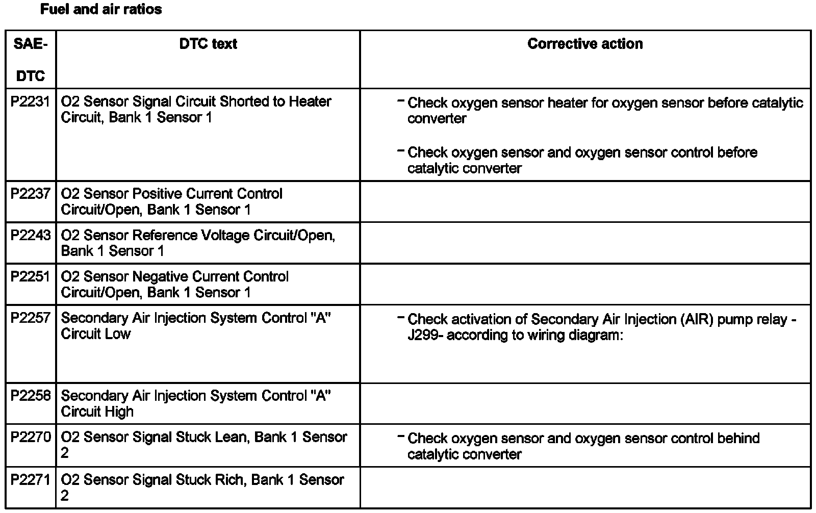 DTC P2231 - P2271: