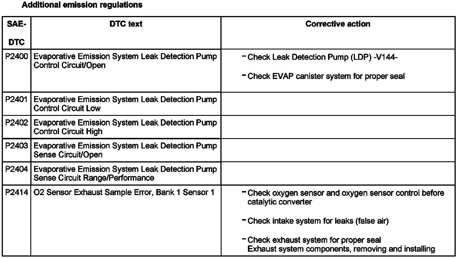 DTC P2400 - P2414: