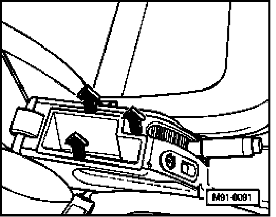 - Insert CD changer removal tools into CD changer as illustrated -arrow- until they are felt to engage.