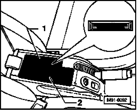 - Then slide/lower CD changer -2- into opening until the mounting clips are felt to engage. Also note the following: