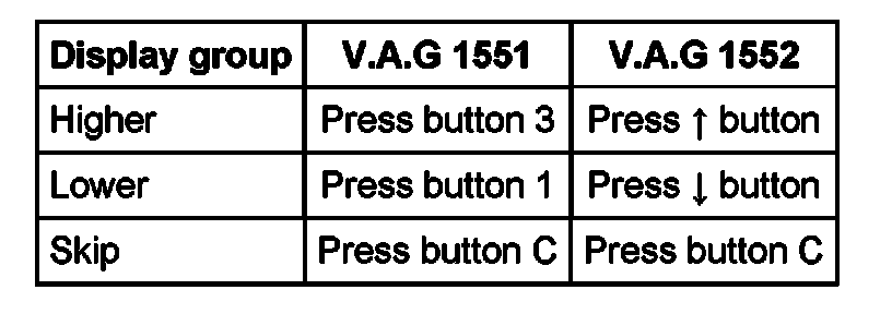 - Some of the display groups are only relevant for vehicles with the corresponding equipment.