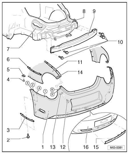 - Overview describes removal and installation of rear bumper for vehicles --> 06.05. Removal and installation applies to vehicles 07.05 -->, except slight changes.
