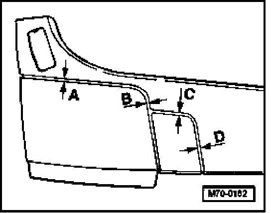 - clearances -A-, -B-, -C-, -D- should be between 3.5 and 4.5 mm in order to avoid jamming or damage to trims whenever they are opened or closed.