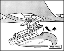 - Pull off rear edge of trim - 1 - (with clock) downward - arrow A - from roof trim and disengage trim at front edge - arrow B -.