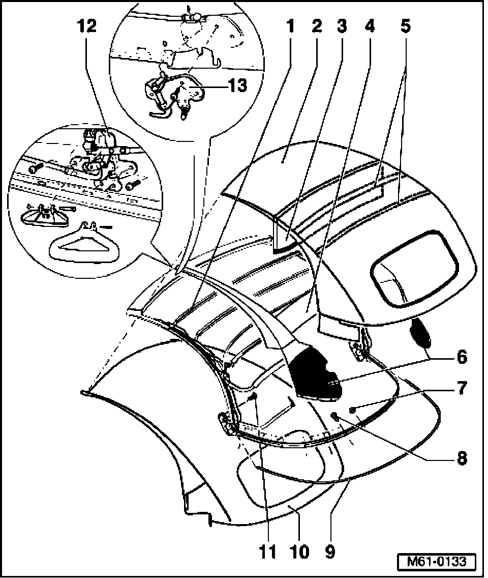 - For correct installation position of convertible top front latch.