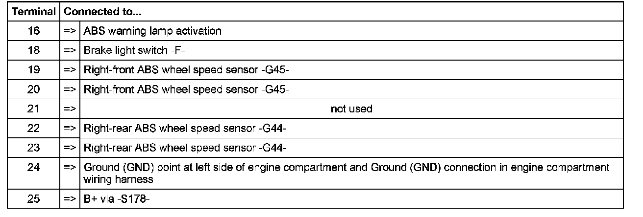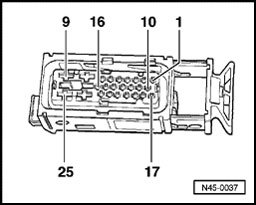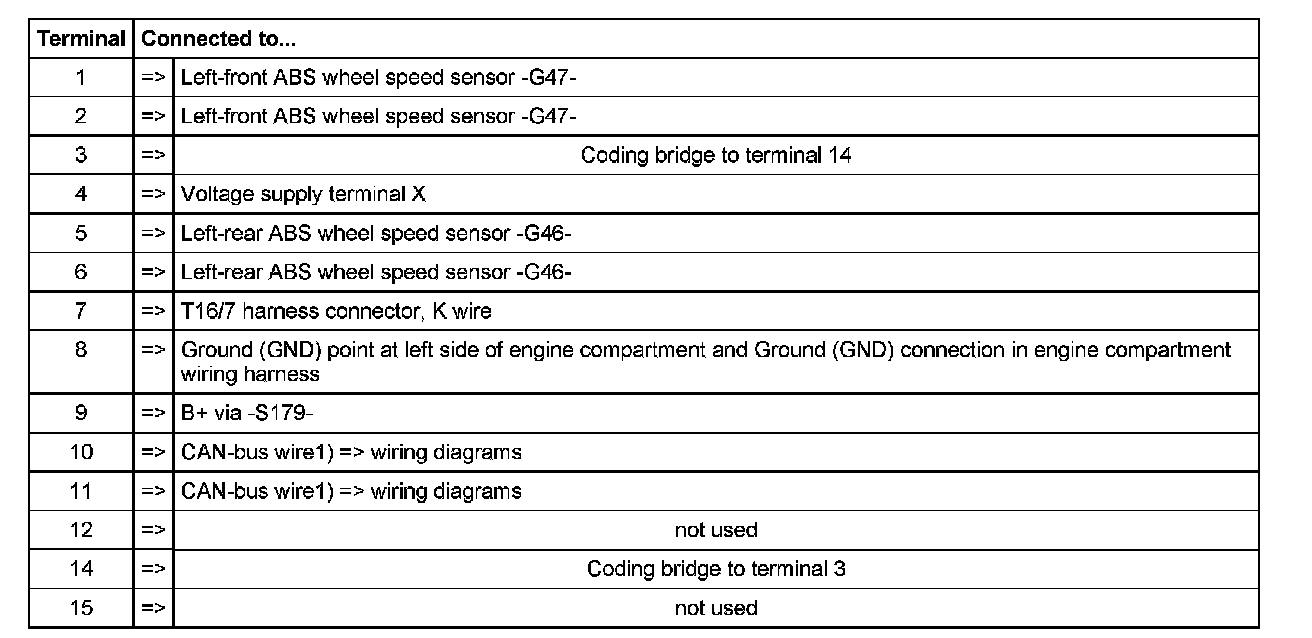 Data Link Connector (DLC) for voltage supply and On Board Diagnostic (OBD) with the V.A.G1551 Scan Tool (ST) terminal assignment: