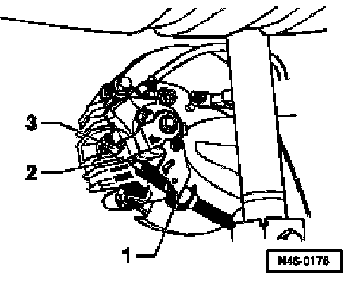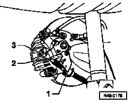 - Press brake lever -2- in direction of arrow and unhook brake cable -3-.