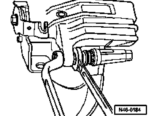 - Remove securing bolts from brake caliper housing, to do this counterhold on guide pins.