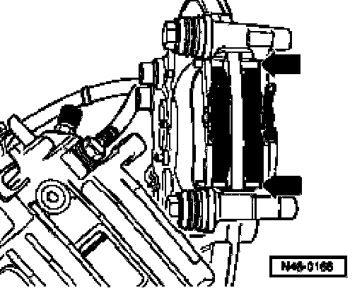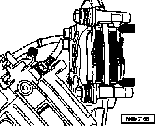 - Secure brake caliper housing with new self-locking bolts.