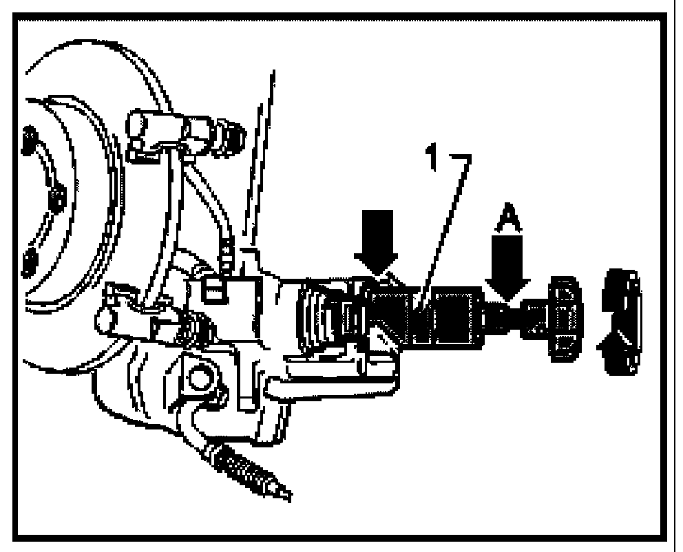 ^ If the piston is difficult to move, use a 13 mm (0.512 inch) AF open end wrench on the flats - arrow A - provided for this purpose.