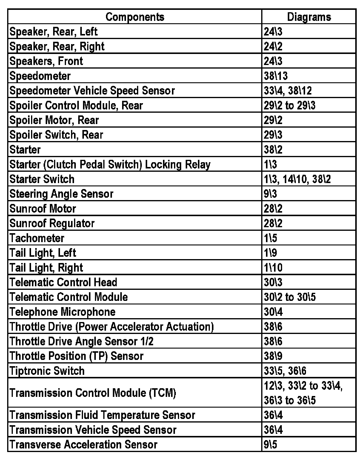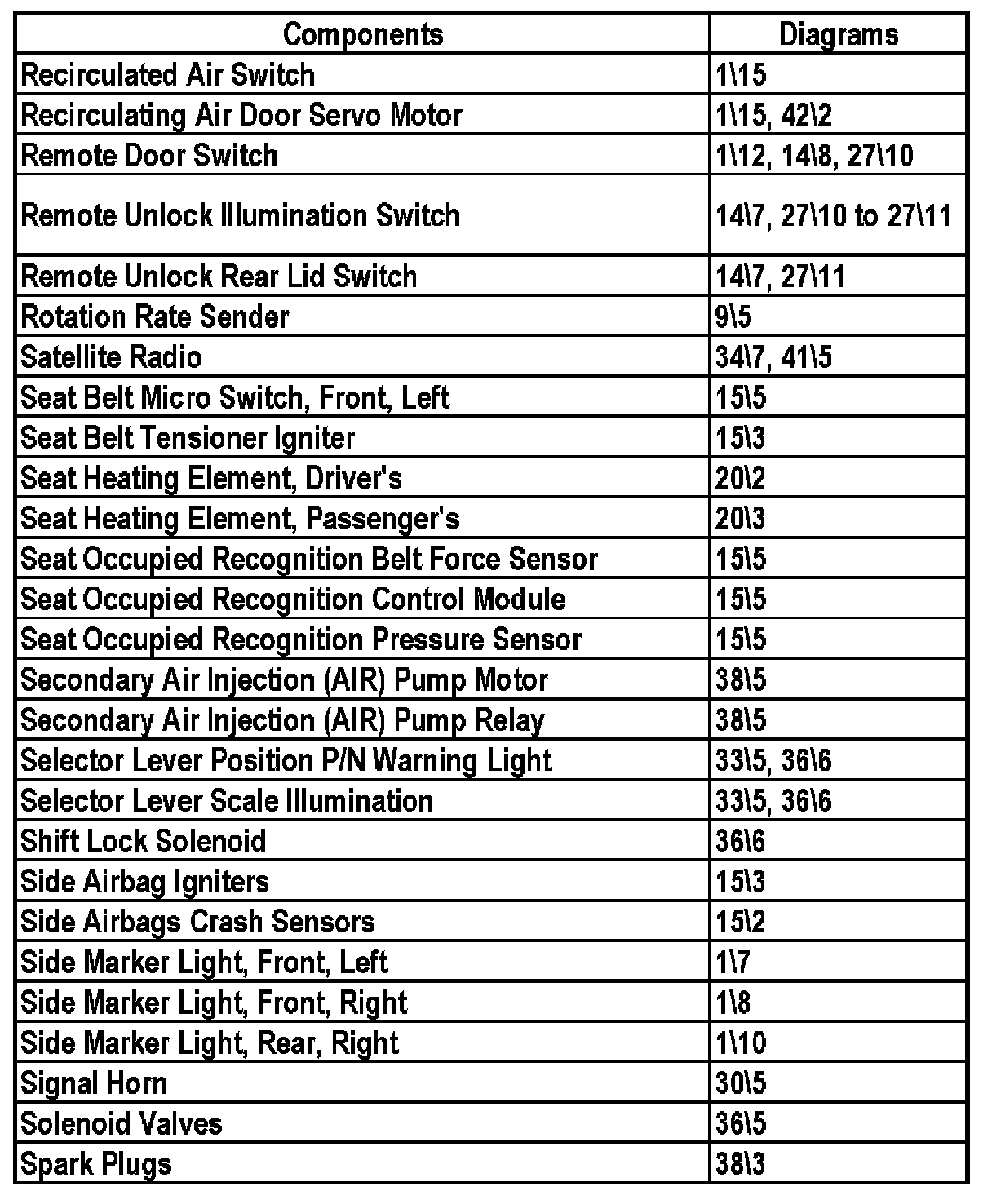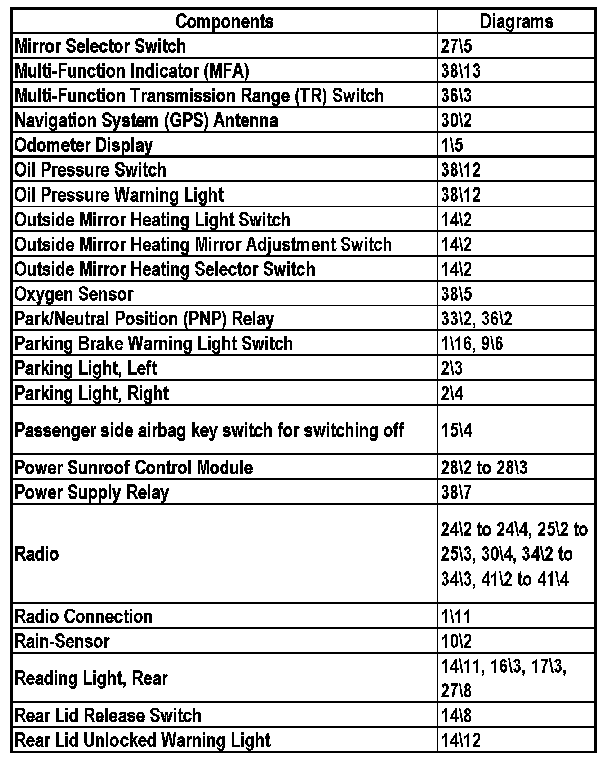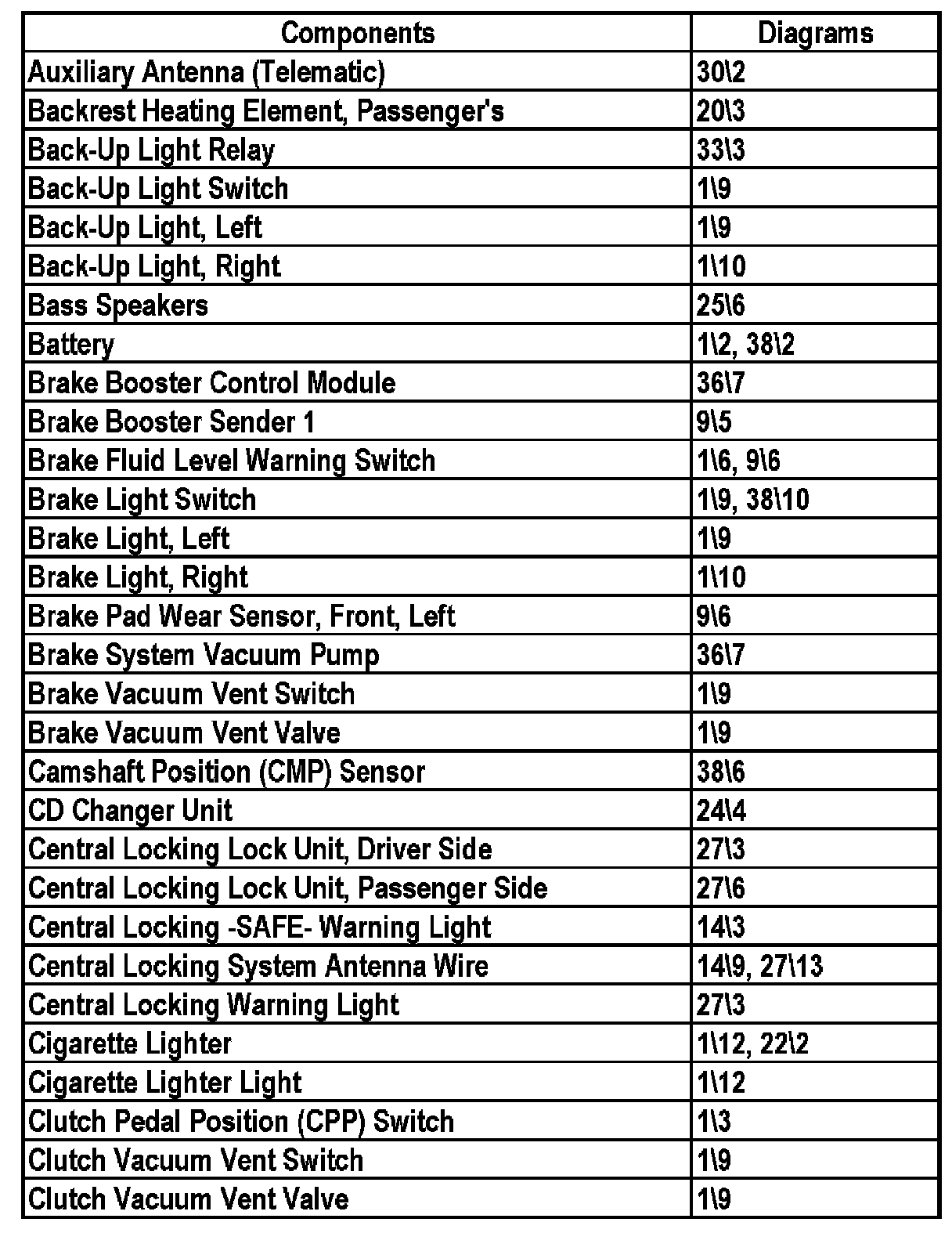 Master Diagram Index - Sedan