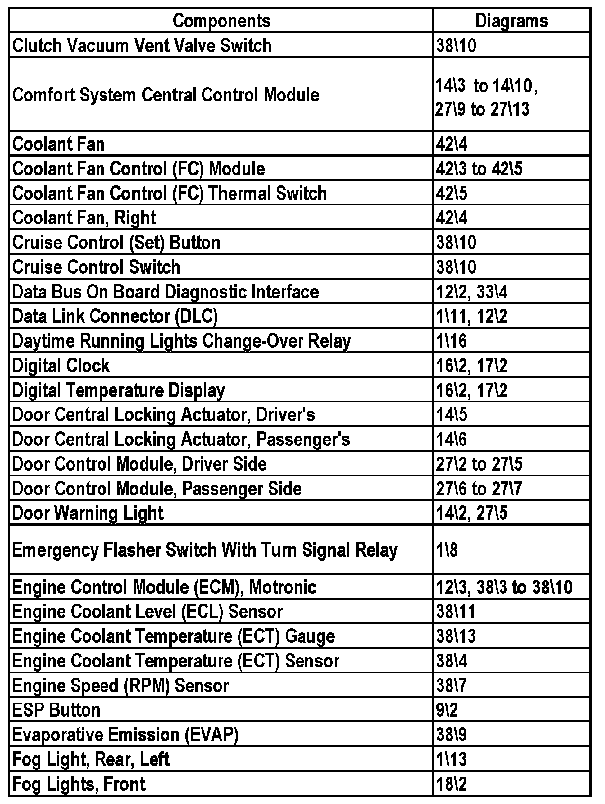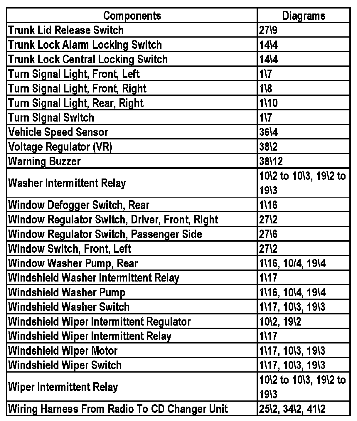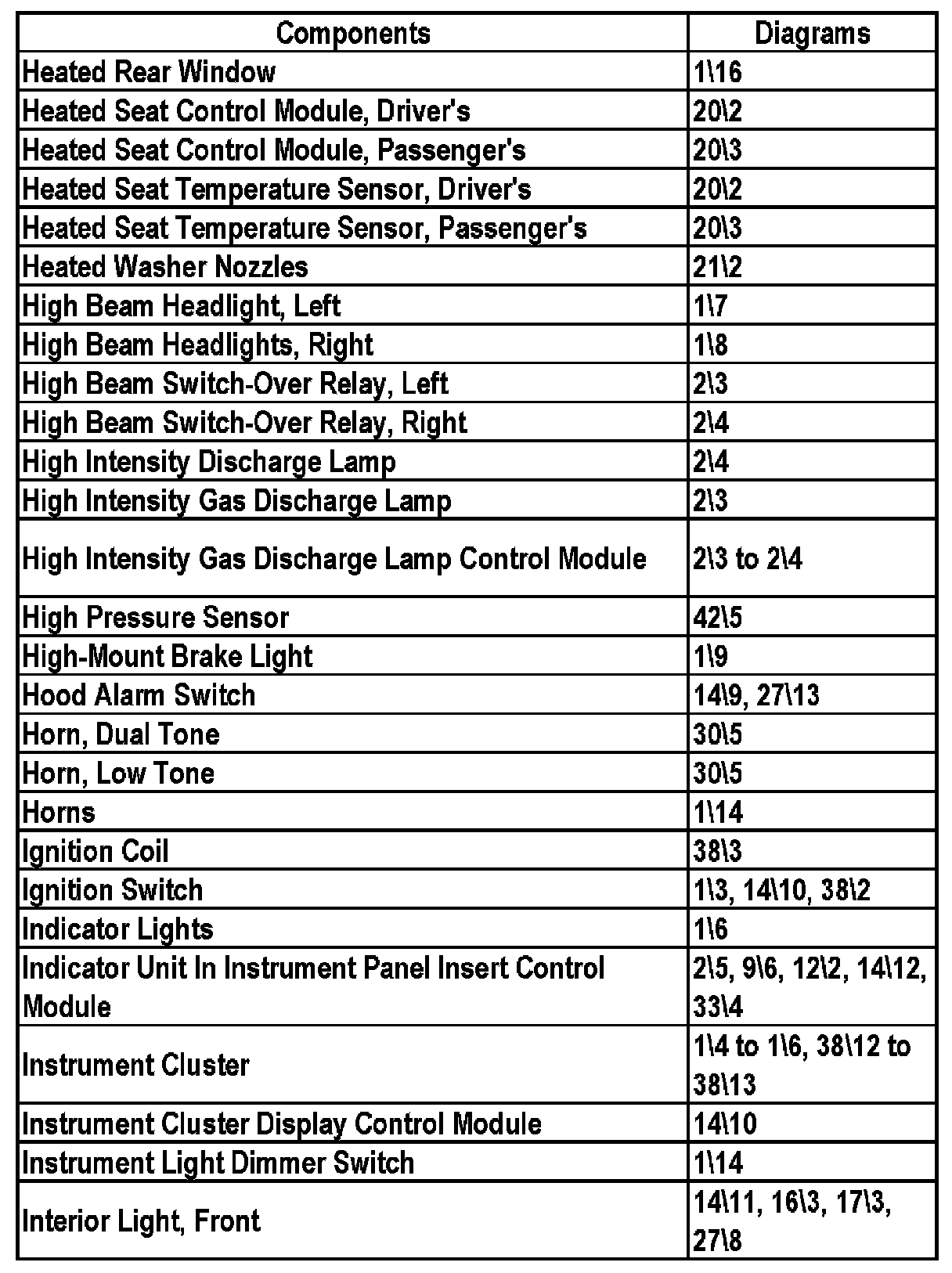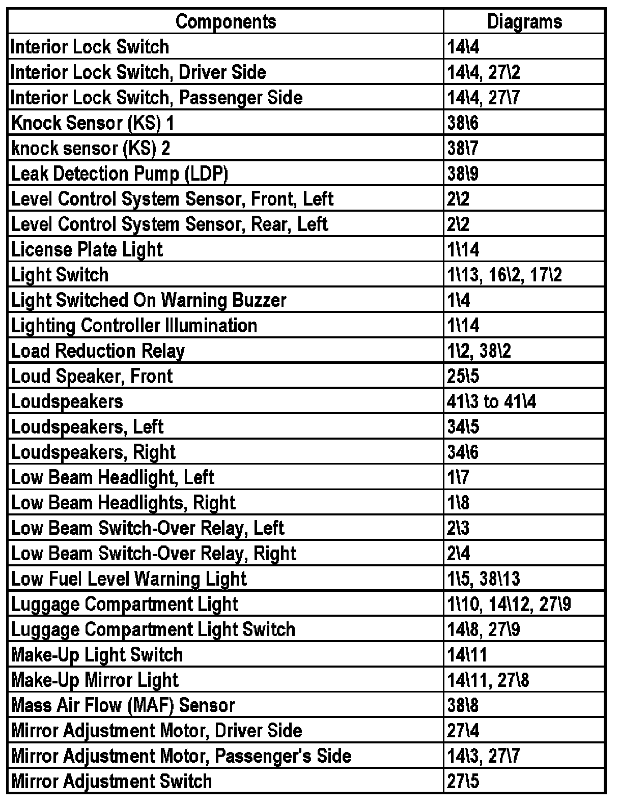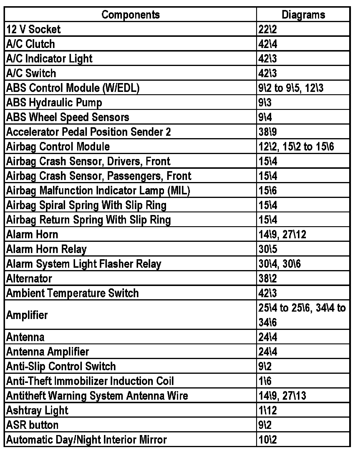 Master Diagram Index - Sedan