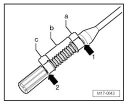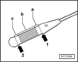 c - Area from min. mark up to grooved field (- b -): Top up with max. 0.5 l of engine oil!