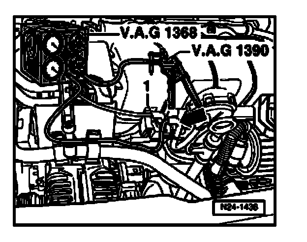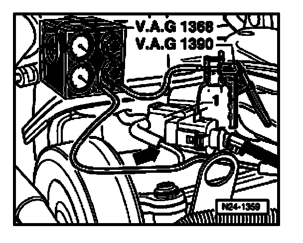 - Fit vacuum hose to actuator to vacuum tester V.A.G1368 connection "A".
