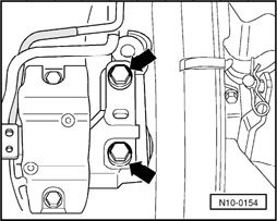 - Fit engine/transmission T10012 onto front of cylinder block with an M1 0x25 / 8.8 bolt and tighten to approx. 40 Nm.