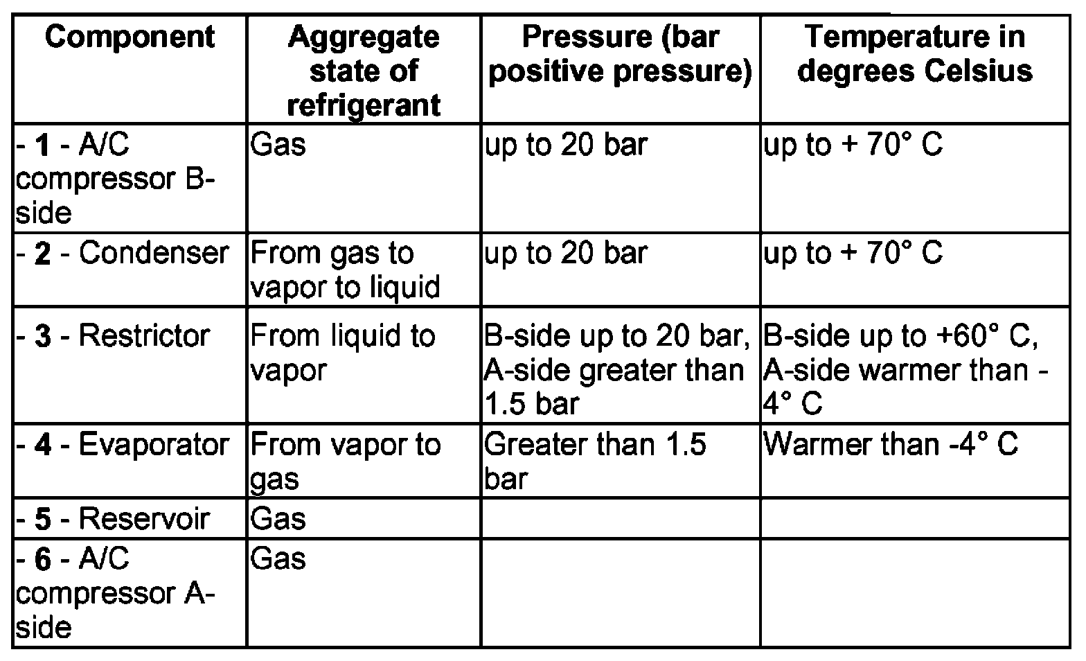 Pressures on A-side are maintained at approx. 2 bar by the "regulating" A/C compressor also at various engine speeds. However, this applies only within the performance range of the A/C compressor; if the performance limits of the A/C compressor are exceeded.