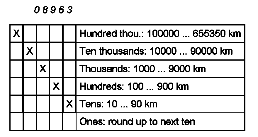 The last position of the odometer reading must be rounded off to the nearest 10.