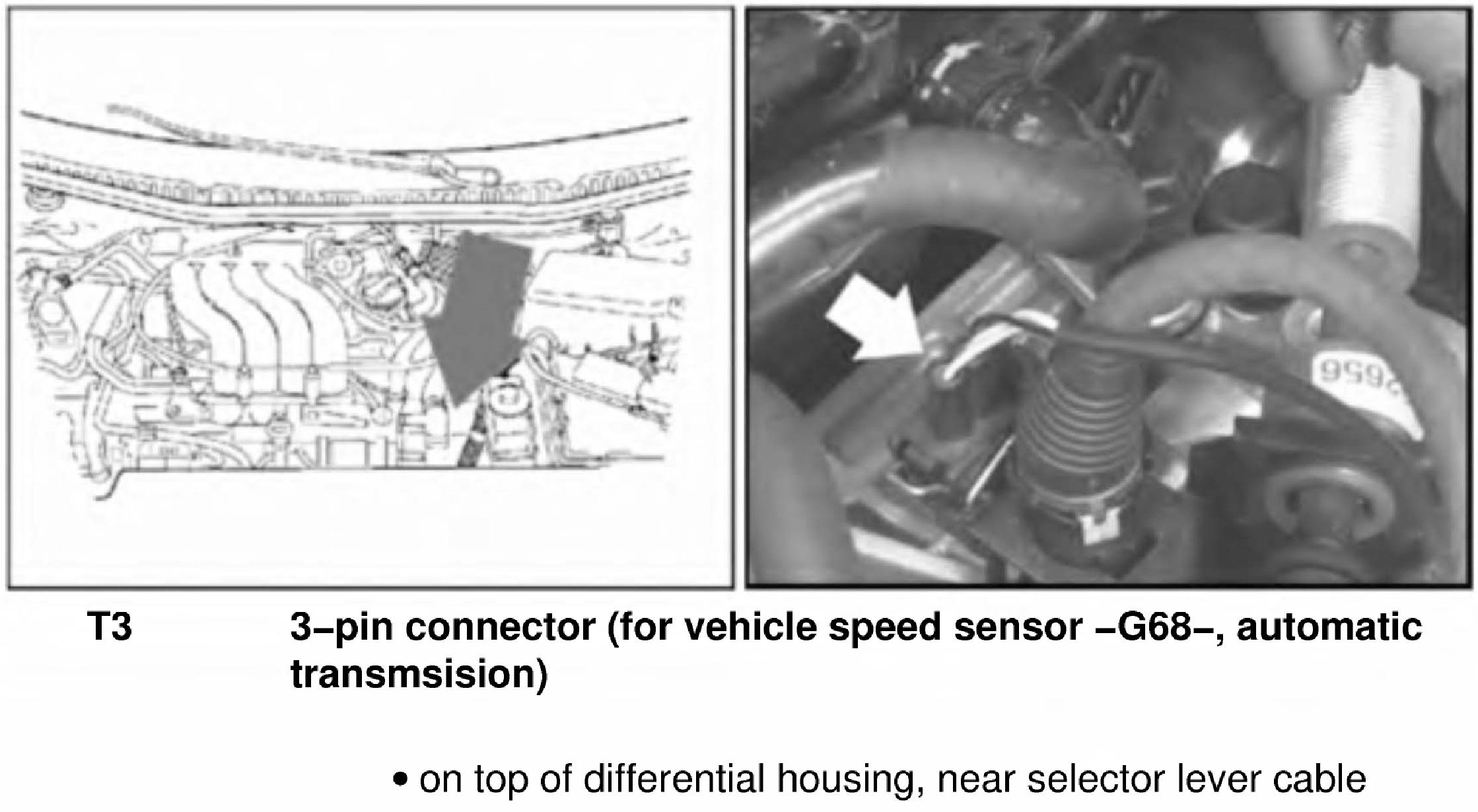 3-Pin Connector (For Vehicle Speed Sensor -G68-, Automatic Transmission) T3