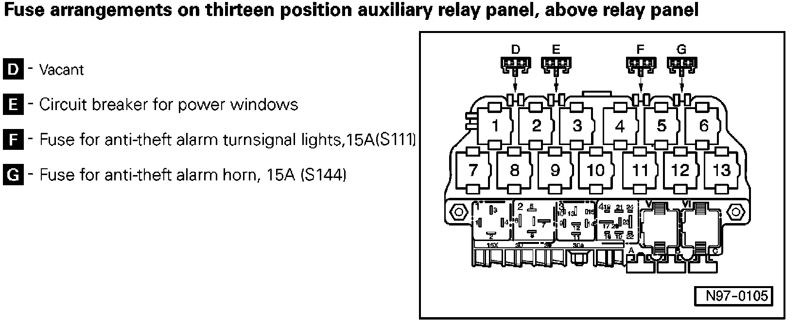 Fuse Arrangements on Thirteen Position Auxiliary Relay Panel, Above Relay Panel