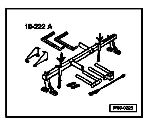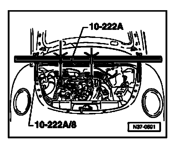 - Position 10-222A engine support bridge with 10-222A/8 brackets as shown and support engine/transmission in this position.