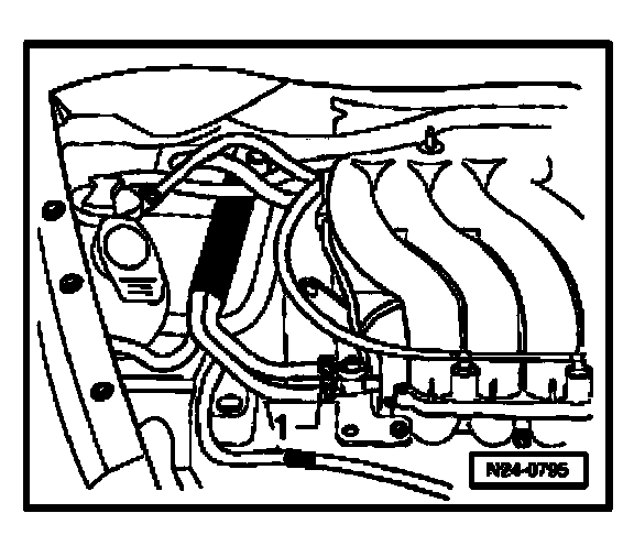 - Disconnect fuel supply line -1- (black) from fuel distributor and catch escaping fuel using a rag.