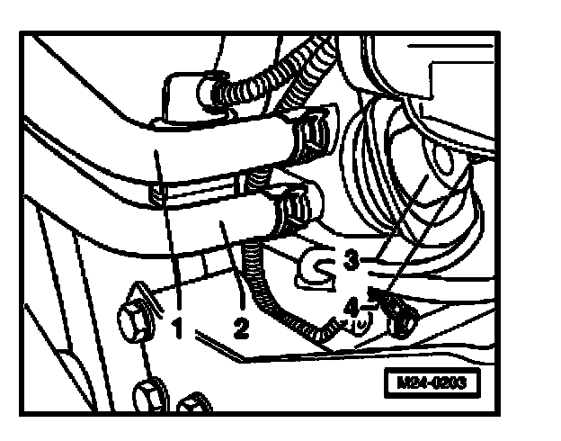 - Wait until pressure has built up, and then switch off ignition. Simultaneously pinch return hose together tightly.