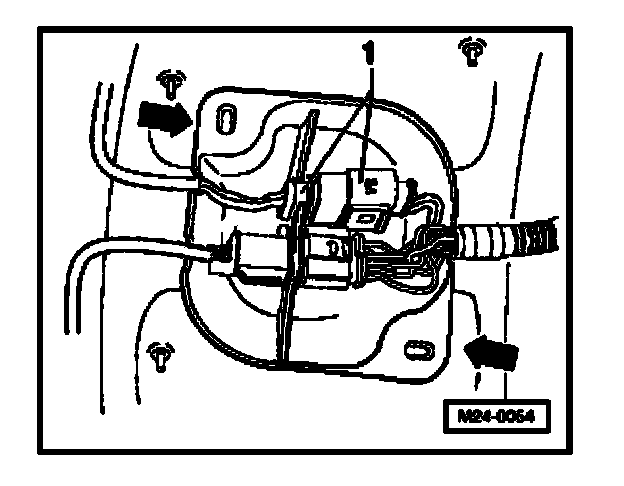 - Remove protective cover (arrows) and disconnect 4-pin harness connector (brown) -1- to Oxygen Sensor (O2S) behind Three Way Catalytic Converter (TWC) -G130-.