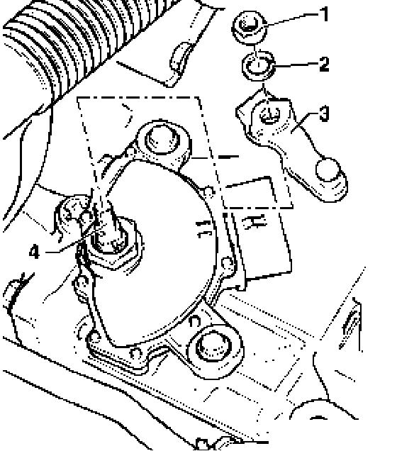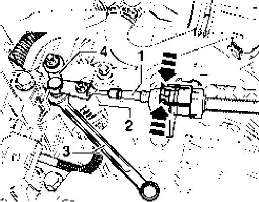 - Press selector lever cable - 1 - off selector shaft lever - 4 - with a 10 mm open end wrench - 3 -.