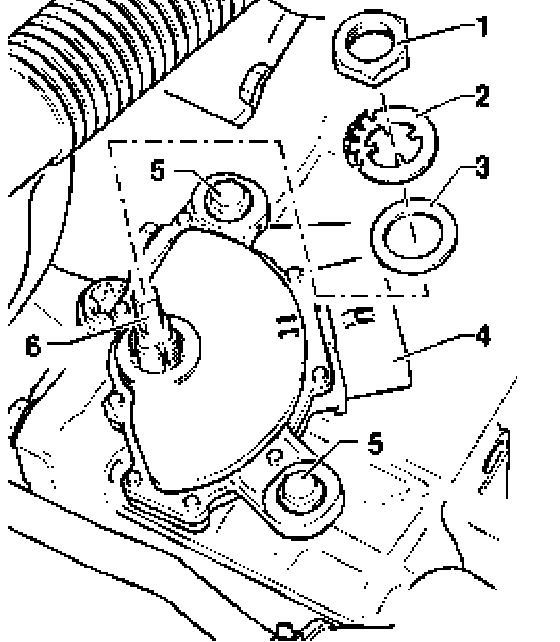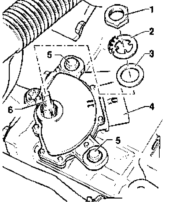 - Remove bolts - 4 -, - 5 - and - 6 -.
