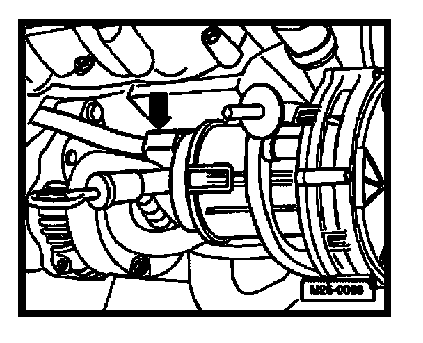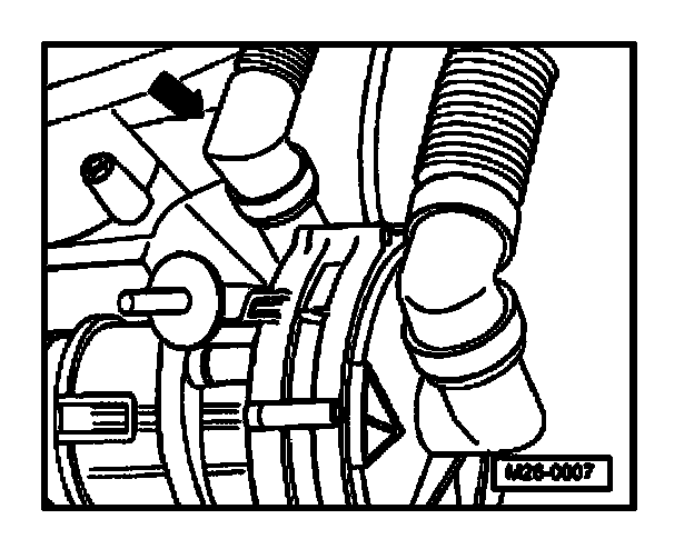- Disconnect pressure hose at Secondary Air Injection (AIR) pump motor (arrow).