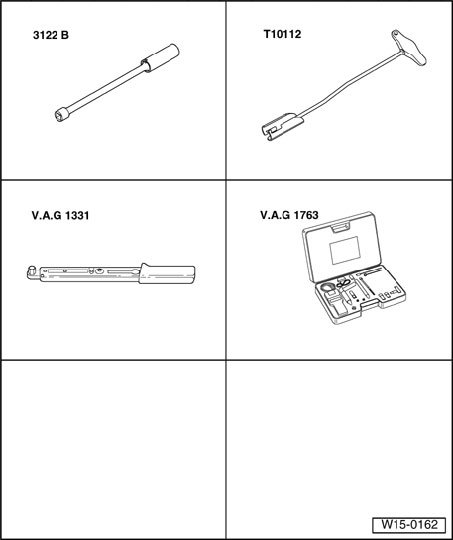 - Check compression with compression tester V.A.G1763 and adapter V.A.G1763/6.