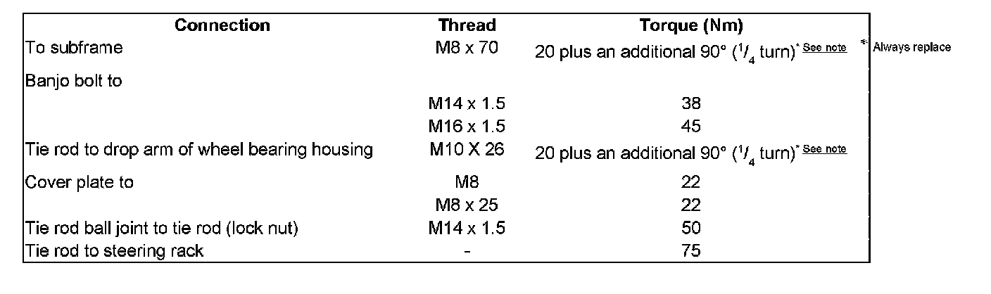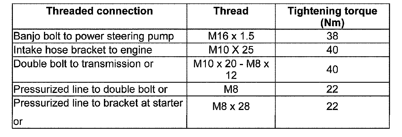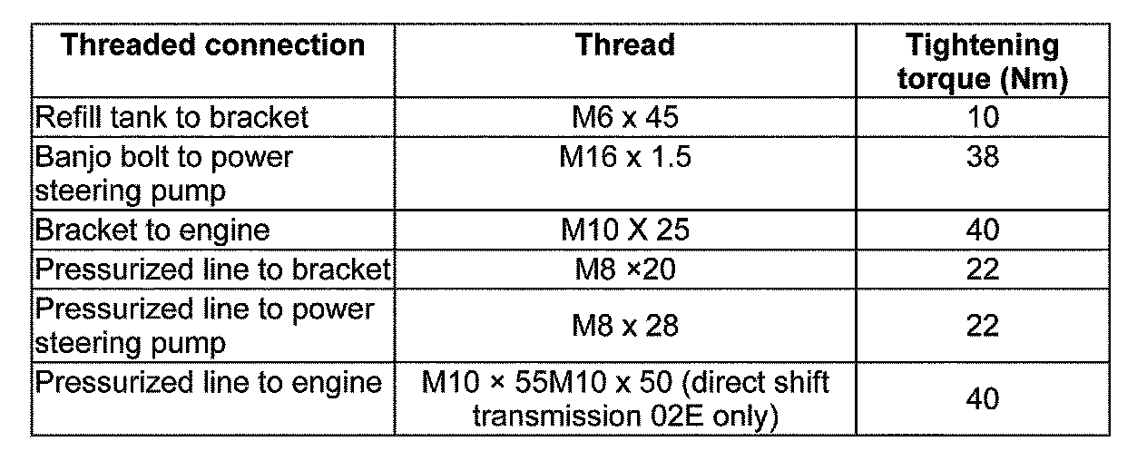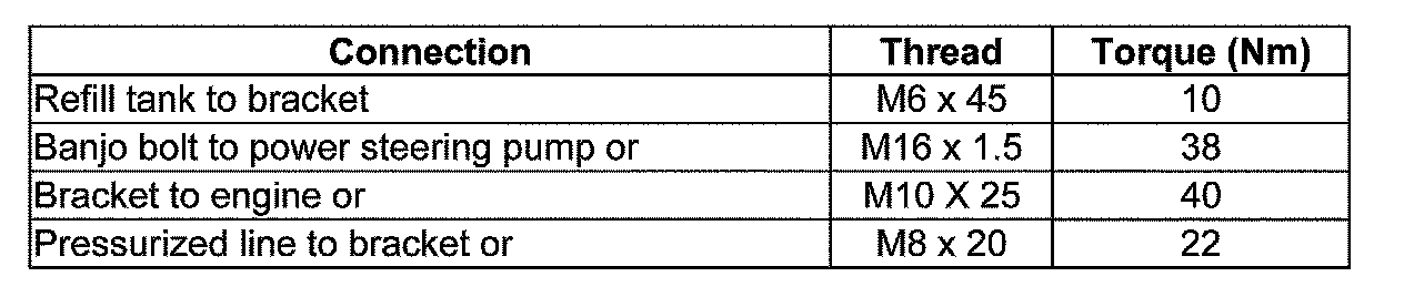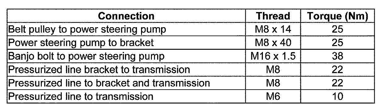 Power steering pump, tightening torques