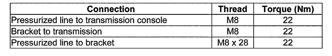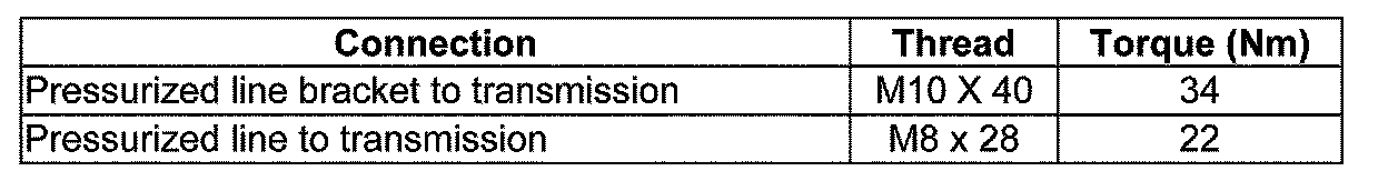 Pressurized line mount to manual and automatic transmissions, tightening torques