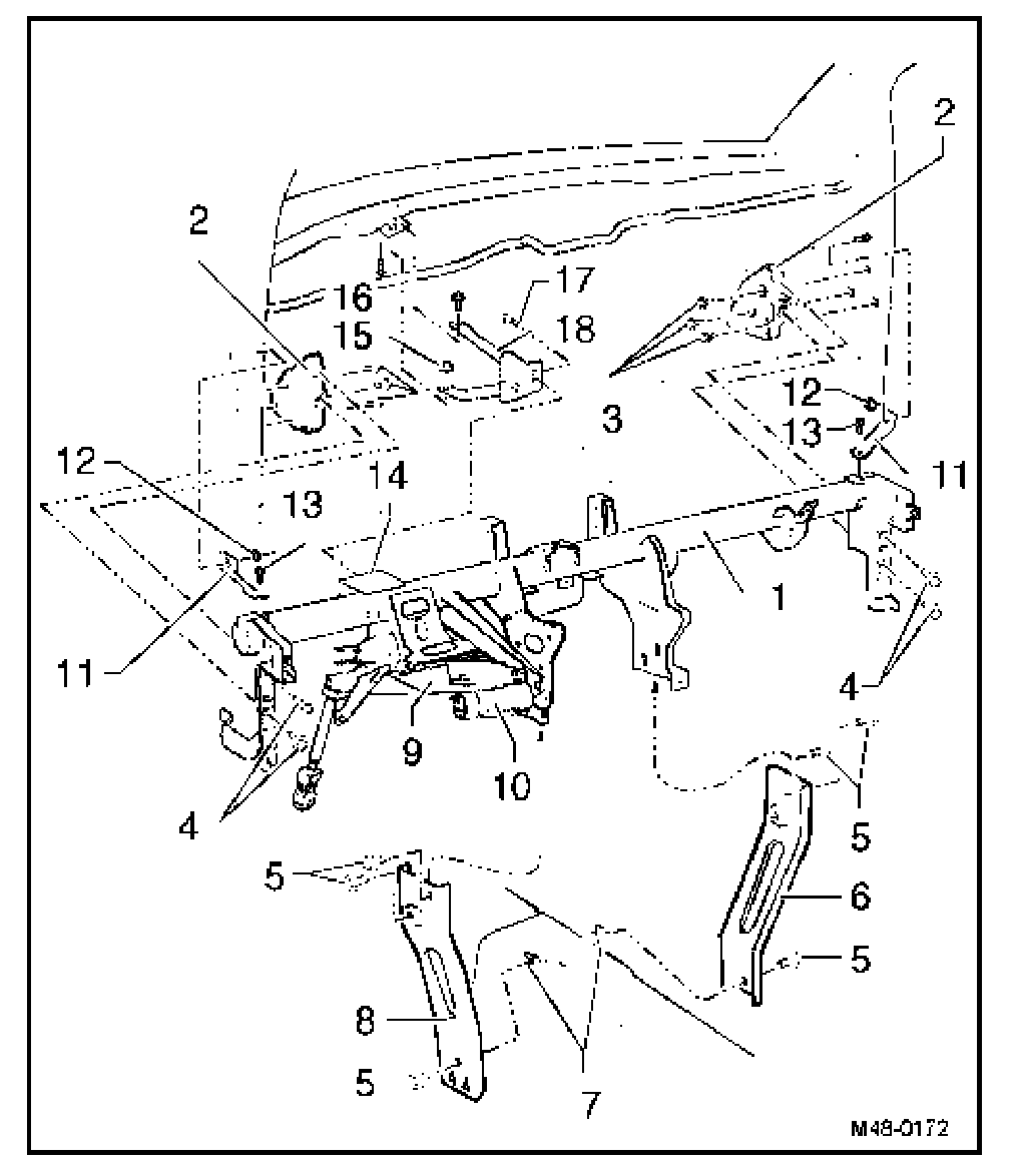 Cross member for steering column - New Beetle Convertible, assembly overview