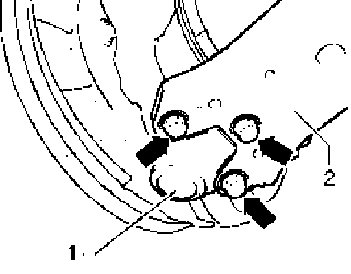 - Mark installation position of bolts - arrows - for ball joint - 1 - on control arm - 2 -