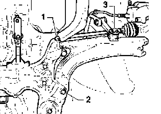 - Remove hex bolts - 1 - and - 2- and remove control arm.