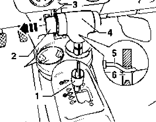 - Press button to lock pull lever - 5 - into pull rod - 6 -. Button must now spring back onto limit stop.