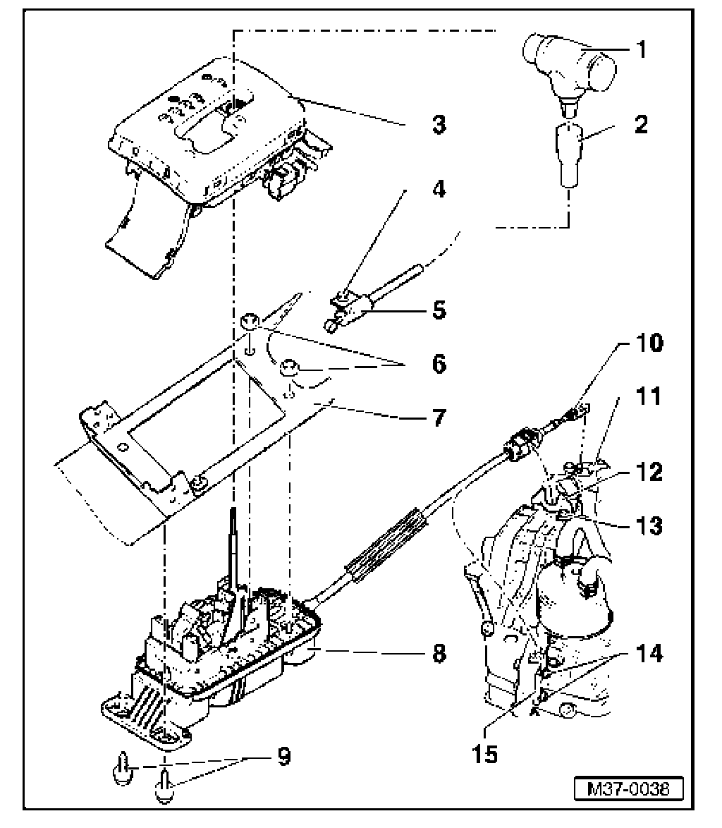 Selector mechanism, removing and installing, 09G, 6 Spd. A/T