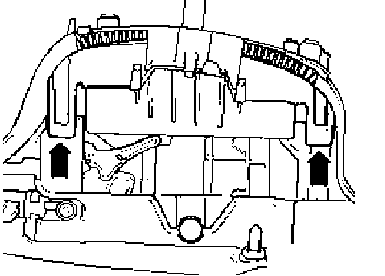 - Disconnect intake hose - 1 - and connector - 2 - from mass air flow sensor.