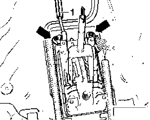 - Unhook locking cable - 1 - from selector mechanism locking lever.