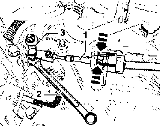 - Press selector lever cable - 1 - off selector shaft lever - 3 - with, e.g. 10 mm open end wrench - 2 -.