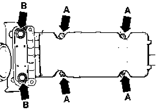 - Disconnect selector mechanism from body - arrows B -. Do not loosen nuts - arrows A -.