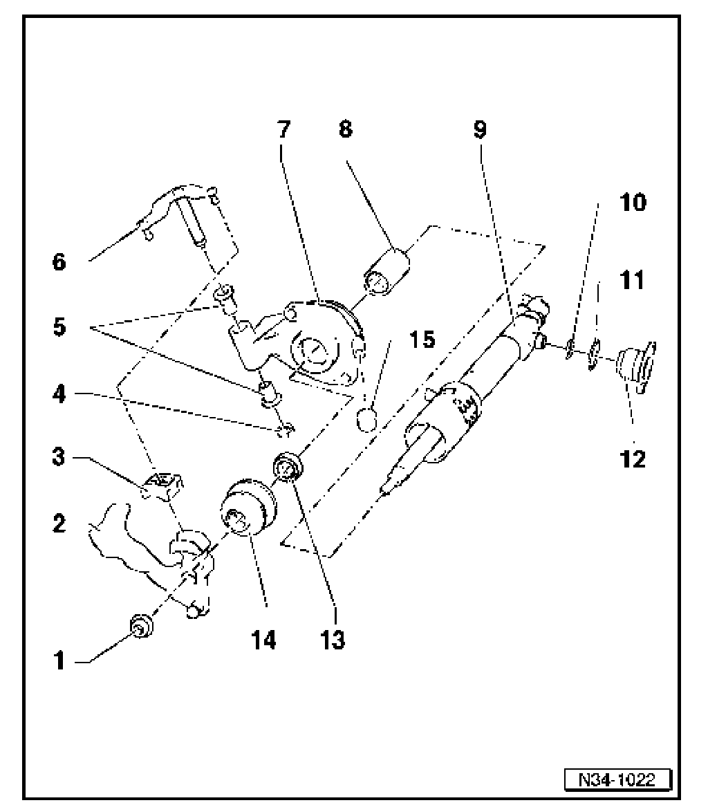 Transmission selector mechanism, disassembling and assembling, 02M, 5 and 6 Spd. M/T