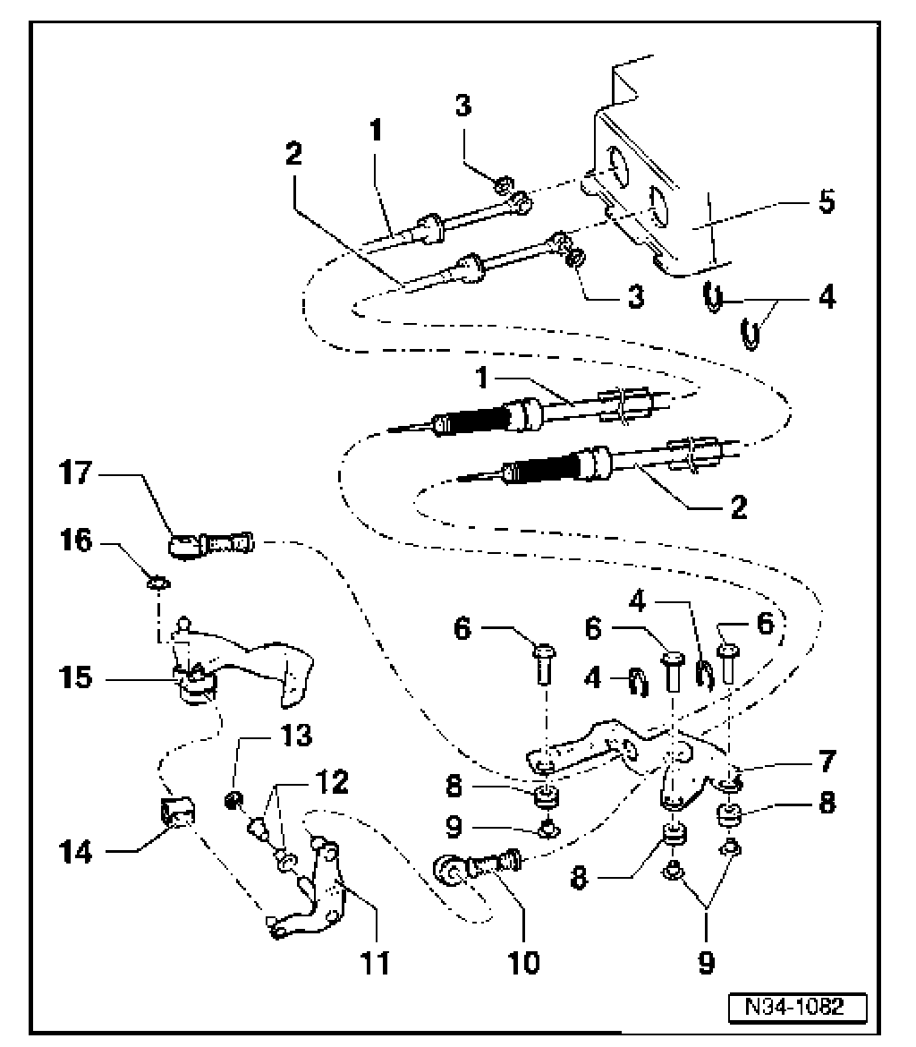 Selector cables, assembly overview, 02M, 5 and 6 Spd. M/T