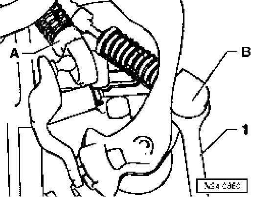- Apply a small amount of Polyurea grease to ball head of selector cable locking mechanism -A- and gate selector cable locking mechanism -B-.