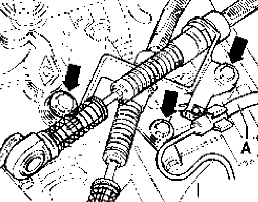 - Remove cable support bracket from transmission (arrows), unclip hose at cable support bracket first.